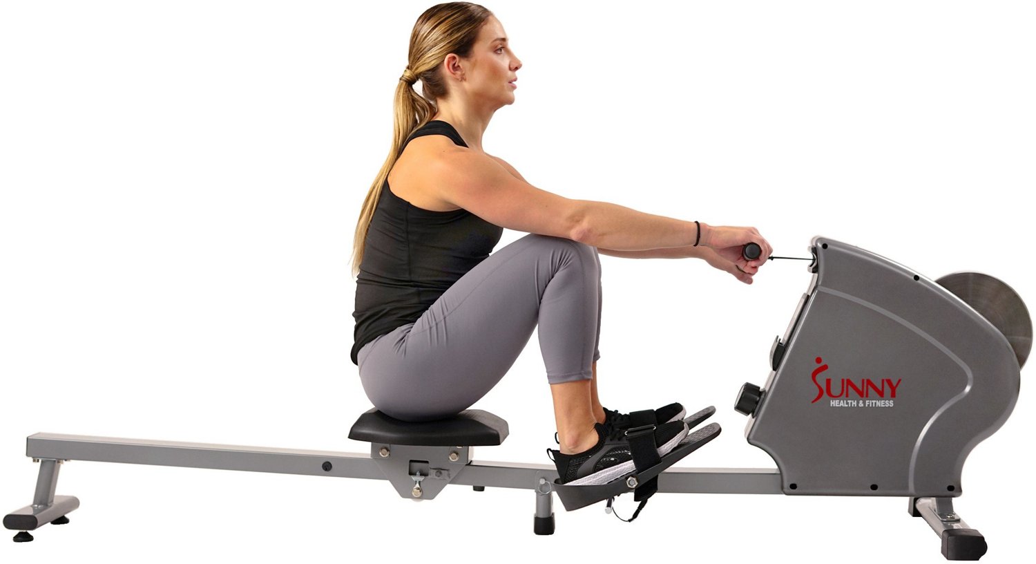 Magnetic Rowing Machine SF-RW5515 Sunny Health Fitness. With a newly improved smoother and quieter magnetic tension system with 8 levels of adjustable tension convenient large lcd console fully padded seat larger anti-slip foot pedals and built-on. The handlebar is attached to a 1 durable nylon cord that is connected to the drive system.